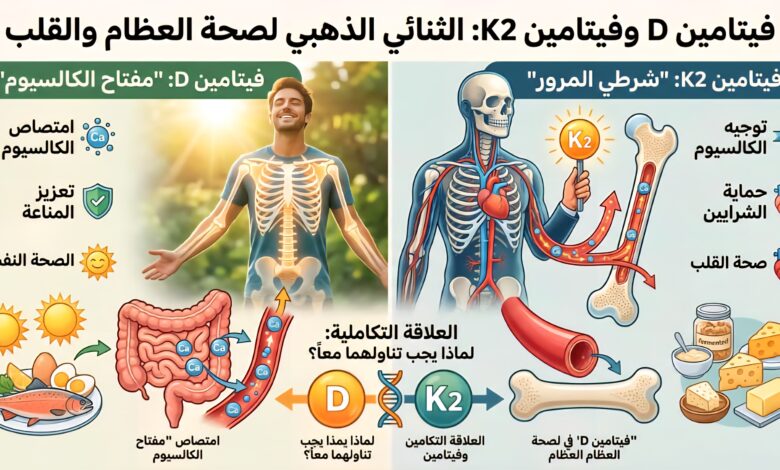 لطالما ساد الاعتقاد بأن فيتامين D هو البطل الوحيد في ساحة صحة العظام، لكن الأبحاث الحديثة كشفت عن “شريك” لا يقل أهمية عنه، وهو فيتامين K2. العمل المشترك بين هذين الفيتامينين يشبه سيمفونية متناغمة تضمن توزيع الكالسيوم في الجسم بدقة متناهية.